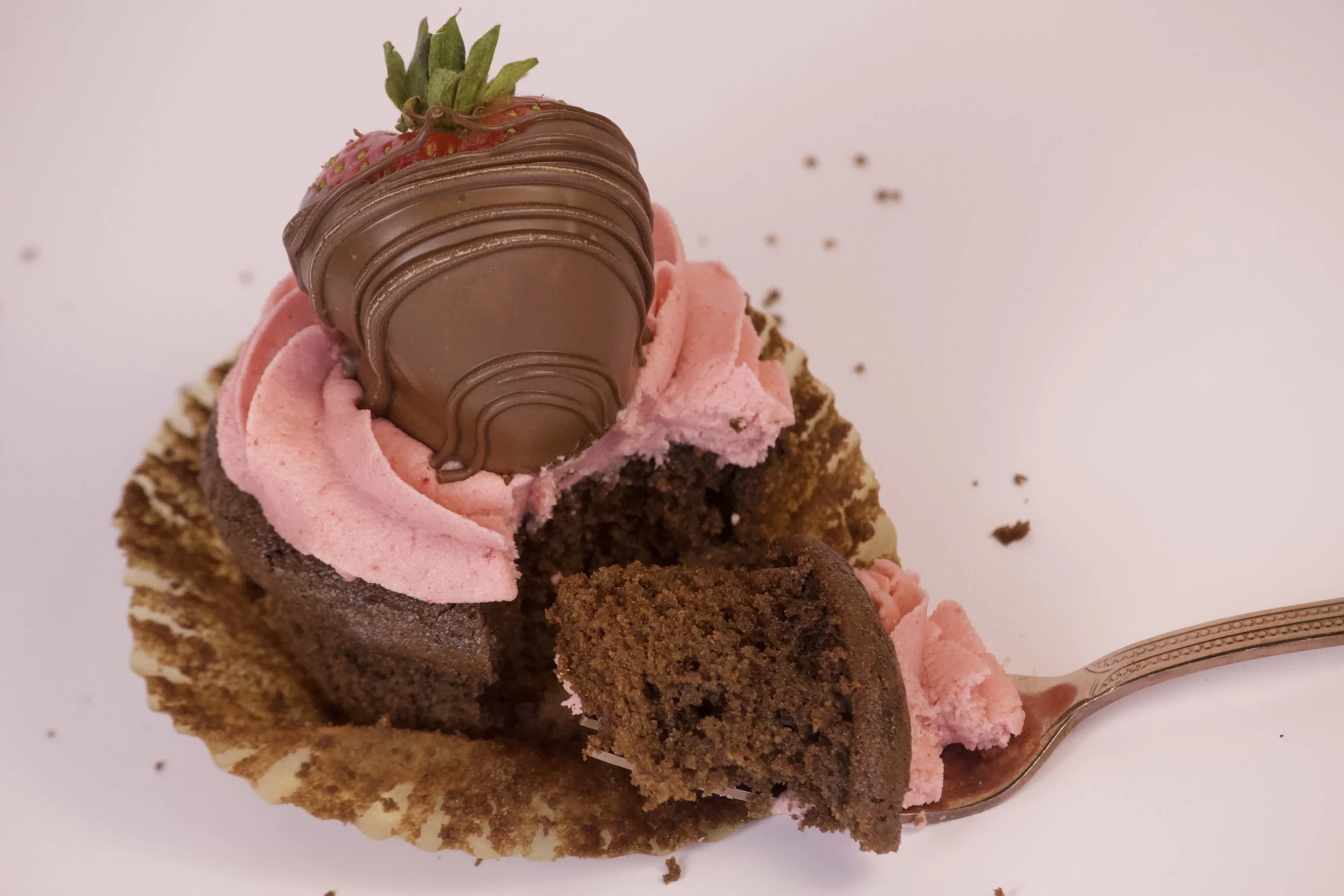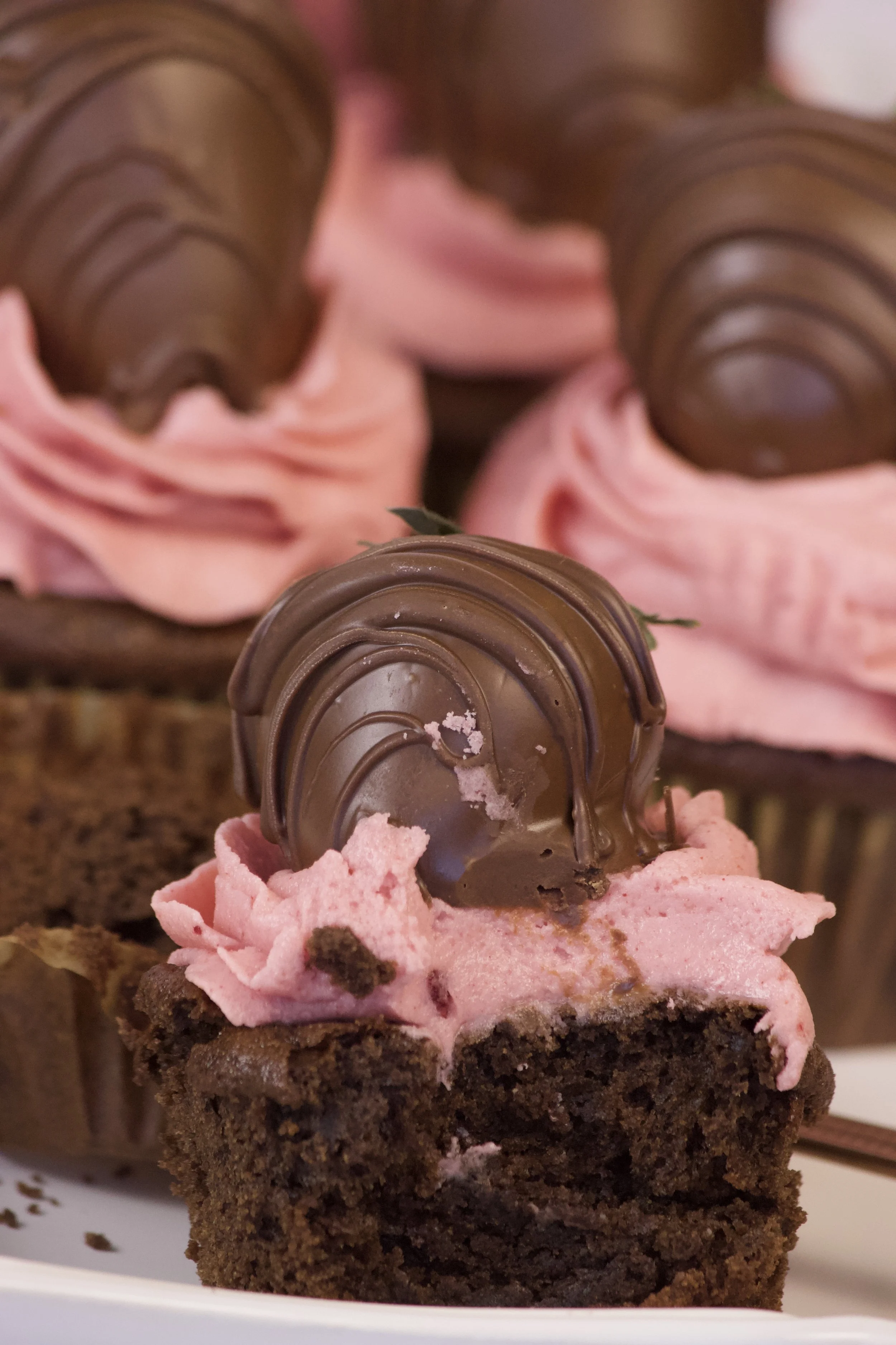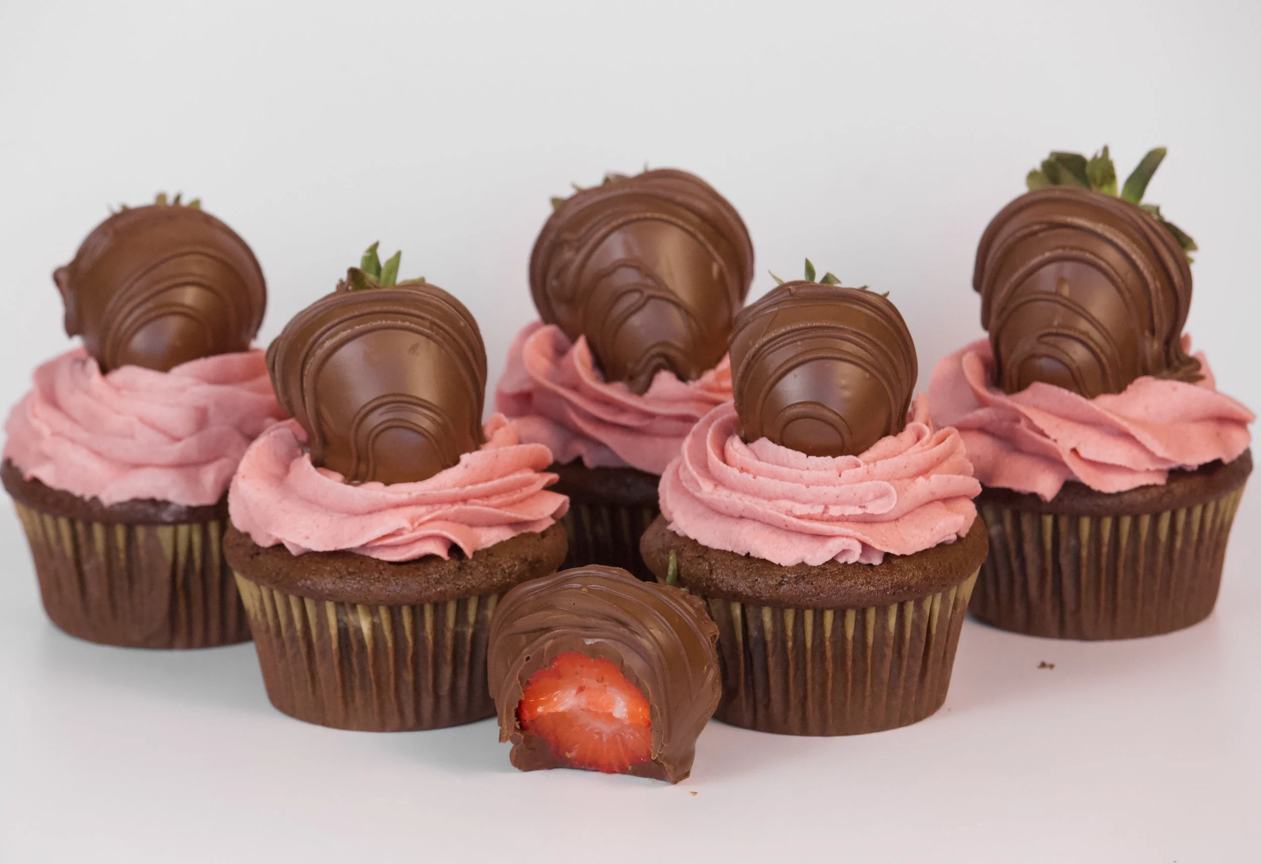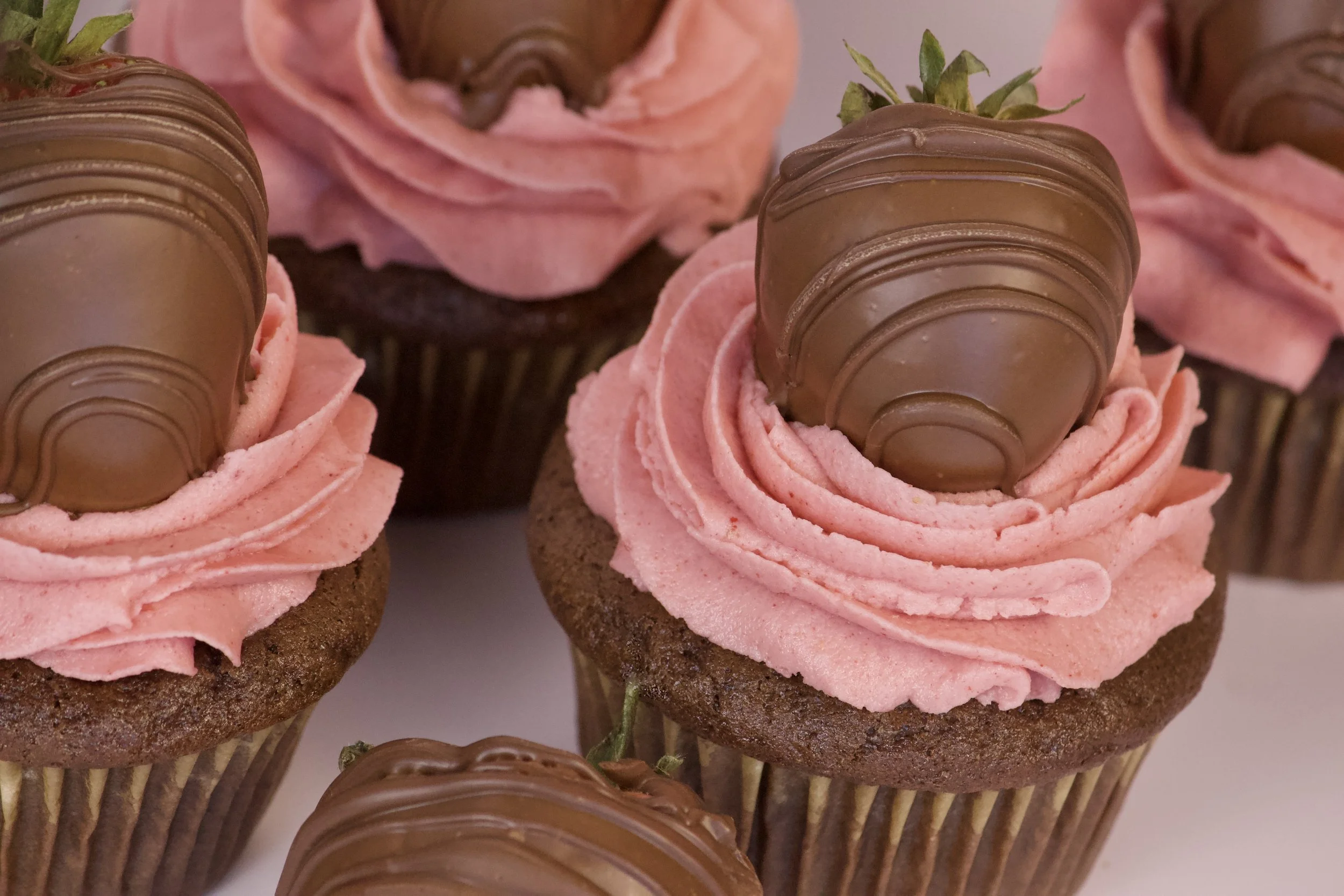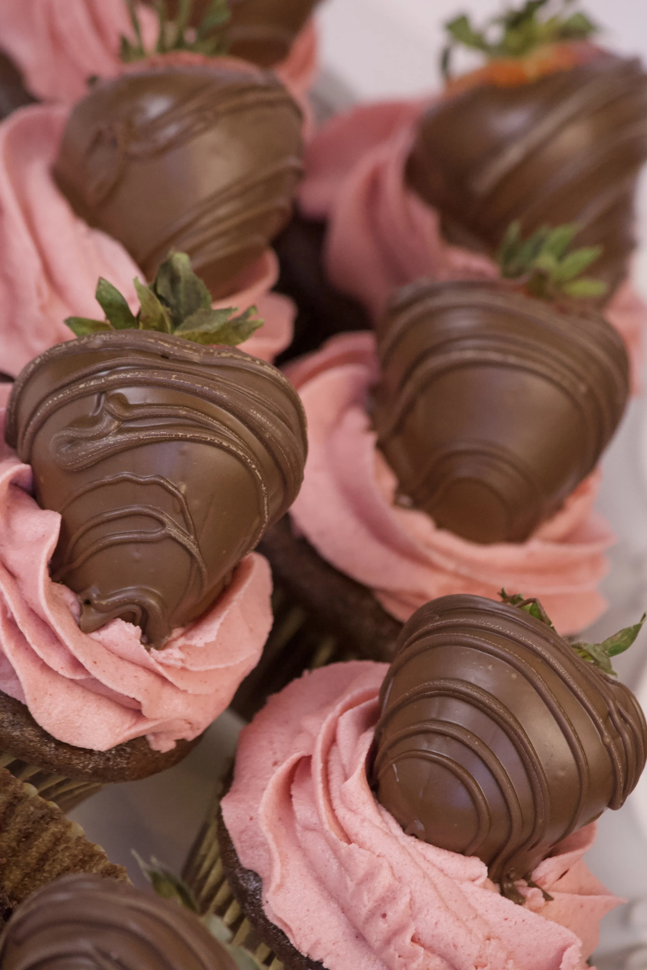 And now for the pièce de résistance: each cupcake is crowned with a glossy, juicy chocolate-covered strawberry. It’s whimsical. It’s indulgent. It’s almost too pretty to eat.